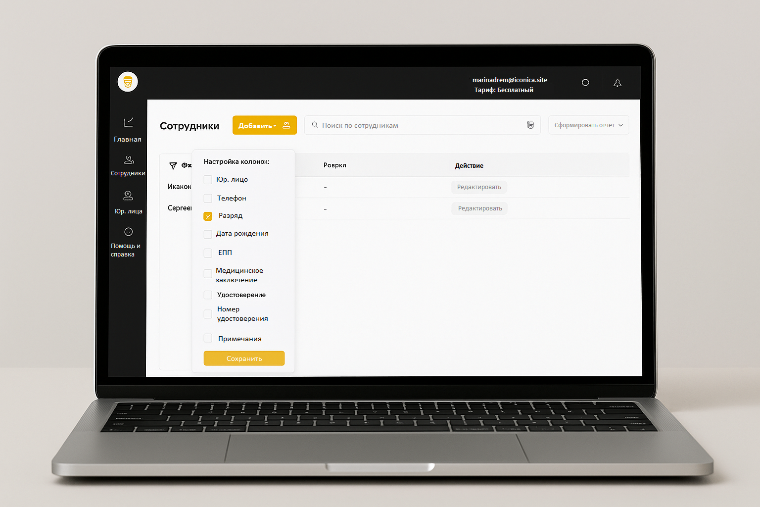 Неограниченное число сотрудников: система масштабируется под любую численность штата без потери производительности.